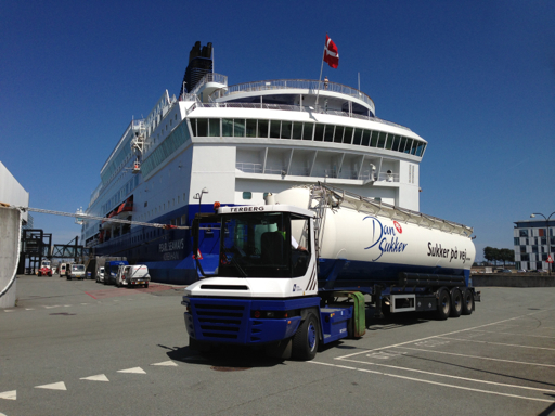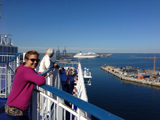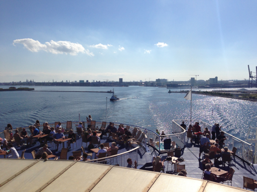 Here’s Dale on the top deck of the Pearl Seaways, surveying Nordhavn Basin, the ferry terminal for Copenhagen, before we cast off. The ship we’re on looks a lot like the one in the distance.