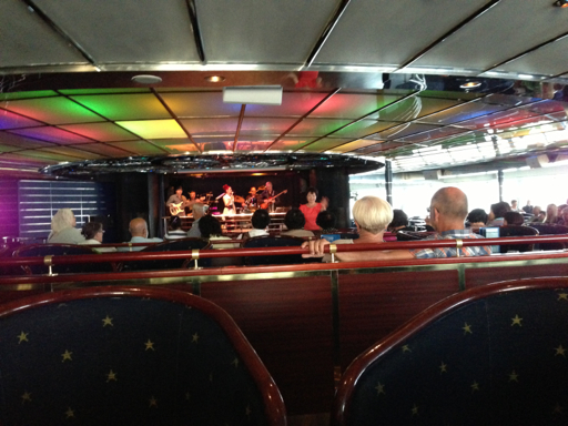 After the early seatings in the buffet had cleared, we ate, then headed for the lounge at the stern of the ship to see what they had for entertainment.