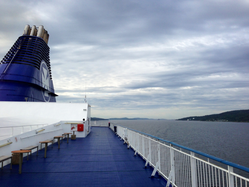 We only stayed for one drink (alcohol was outrageously expensive on the ship and in Norway), then called it a night so that we could be up early to see Norway as we entered the Oslofjord the next morning; here it is, Wednesday around 6:30 a.m.: