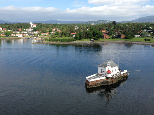 About halfway into the Oslofjord, we passed a small islet that had been converted into a military installation by King Christian IV (remember him, Christian the Builder) in 1644 when he was king of both Denmark and Norway.