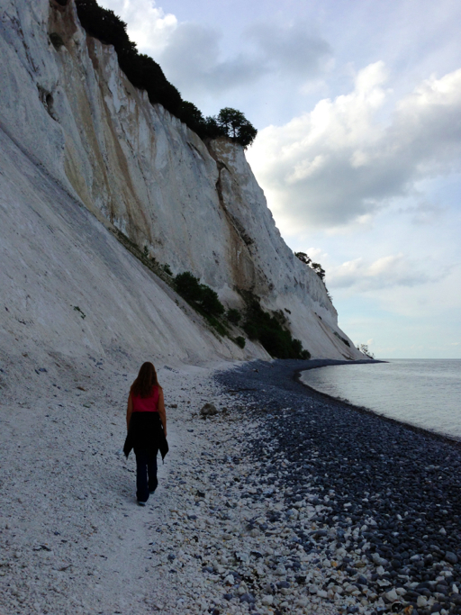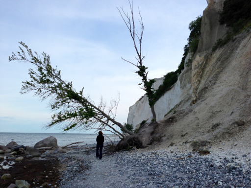 The chalk cliffs on Møn were formed over 70 million years ago when glacial action pushed up the sea bottom made up of the shells of microscopic organisms. Layers of flint stone were folded into the chalk by the glaciers and over the years, the resulting chalk mounds have eroded along the Baltic, creating the cliffs. As the flint has been exposed, it has fallen down the cliff face to the water’s edge, creating the rock beach.