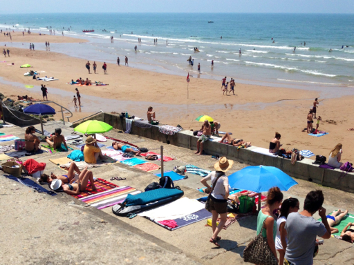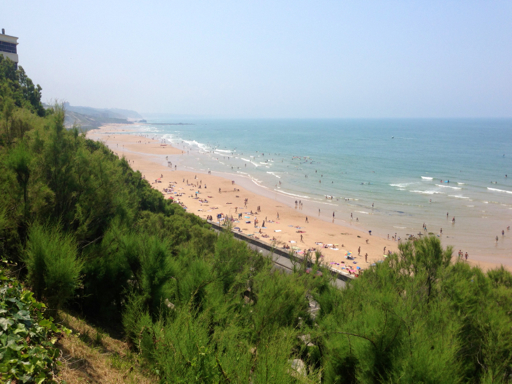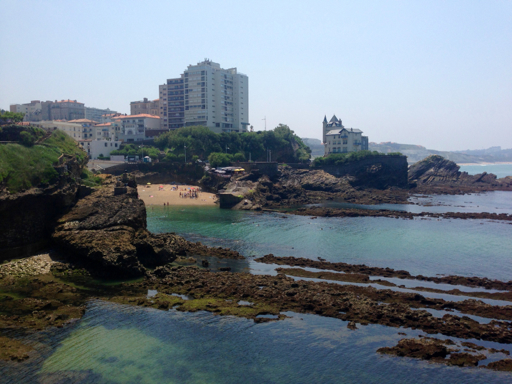 Côte des Basques Beach was pretty crowded (top-right you can see the other side of the chateau; our “self-portrait” photo was taken from out on those rocks to the left of it).