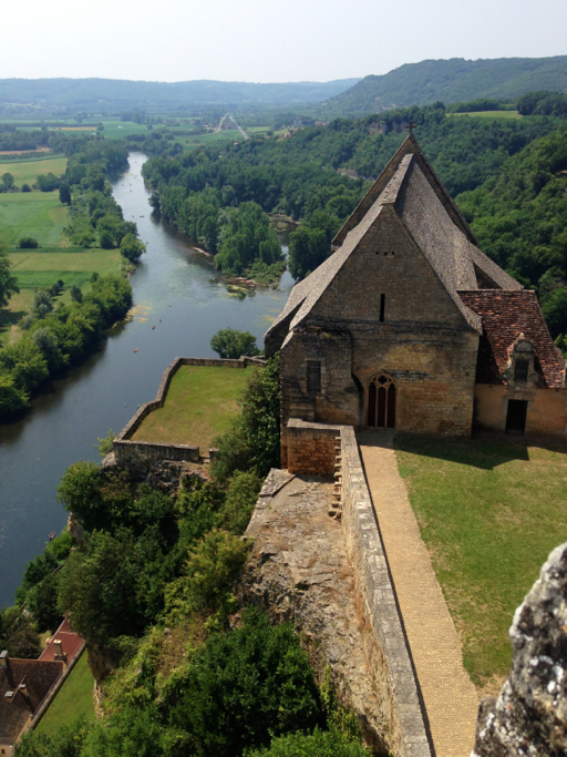 From that vantage point, we could look west down the Dordogne River, beyond the chapel which, though built within the castle’s fortifications about 800 years ago, still functions as the local parish church with services every Sunday.
