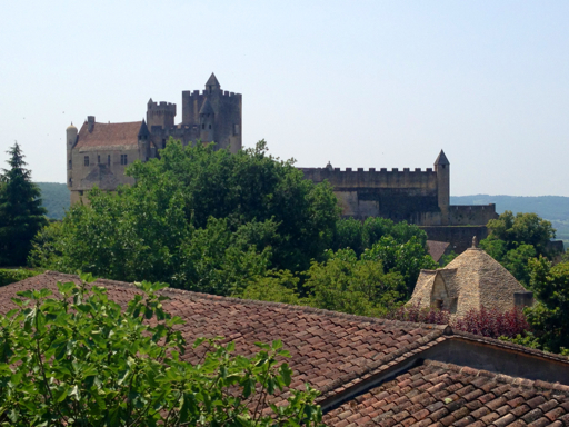 About 30 miles east of the city of Bergerac, high up on a limestone cliff face, is the most amazing and well-preserved medieval castle we have seen anywhere in our travels, the Château de Beynac.