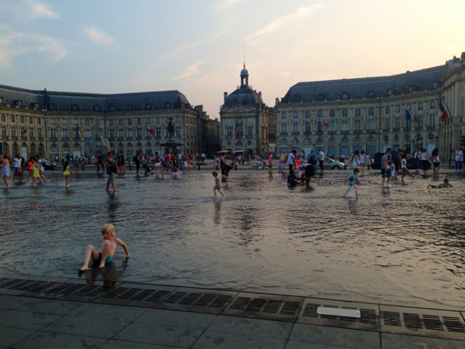 The Place de la Bourse is the location of the old stock exchange. Behind all these hopeful fireworks spectators is a huge reflecting pool that the anxious kids in the crowd were cooling off in as their parents waited.