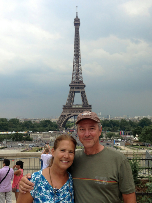 At the Jardins du Trocodéro we asked someone to take our picture – as all tourists do – with the Tour Eiffel, the Eiffel Tower, in the background: