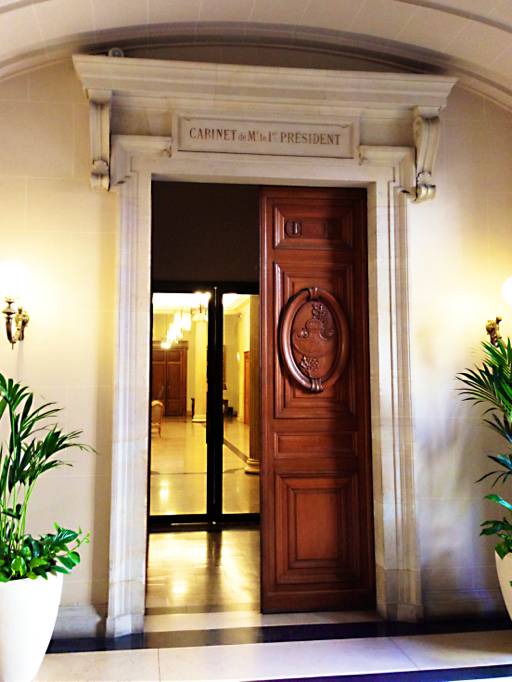 A little further down the hall was the office of the Chief Justice, Messieur le 1st President, a very important guy here. What you see through that door is just the foyer to his chambers. He is, essentially, the head of the third branch of government in France.