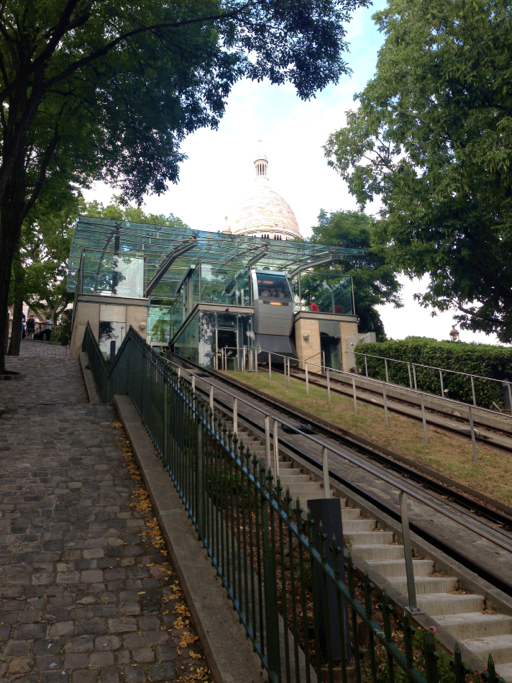 Growing weary of walking by now, we opted to ride the funicular to the top of Montmartre, the Martyrs Mount. At 425 feet, Montmartre is one of the highest natural points in Paris, visible from our apartment on the opposite side of the city.
