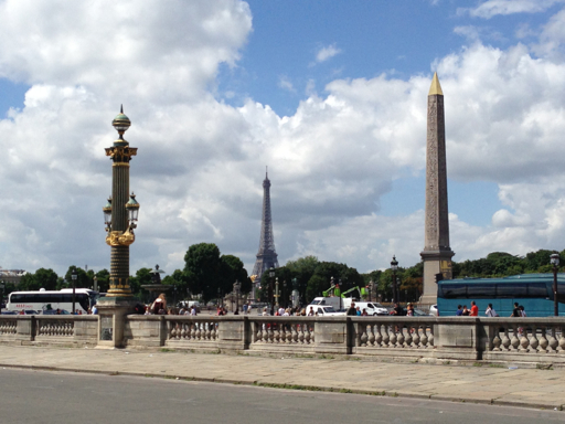 Leaving the Musée l’Orangerie, we walked through the Place du Concorde, the centerpiece of which is the 3,300-year-old Obelisk of Luxor (from the Luxor Temple in Egypt). This 75-tall pillar (on the right in the photo, below) was erected in the exact spot where the guillotine stood that was used to execute King Louis XVI and his wife, Marie Antoinette, during the French Revolution.