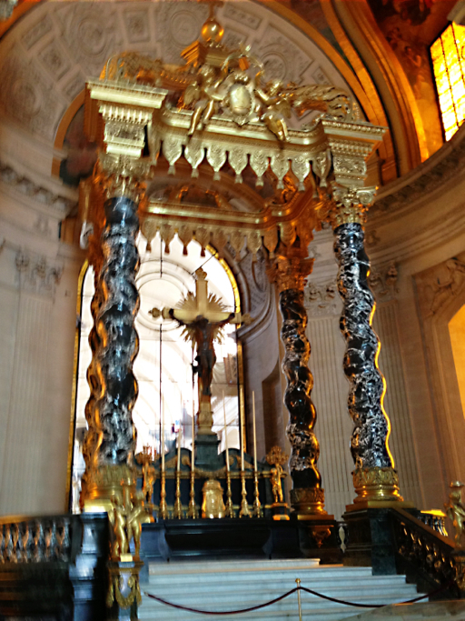 We walked through the entry and crossed the courtyard, entering the veteran’s chapel, the Église Saint-Louis des Invalides, which was brightly lit at this time of day.