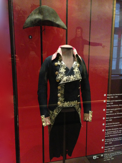 Anyway, here’s Napoleon’s uniform, now on display in the Musée de l’Armée; standing next to it, it’s easy to see that he had a very slight frame: