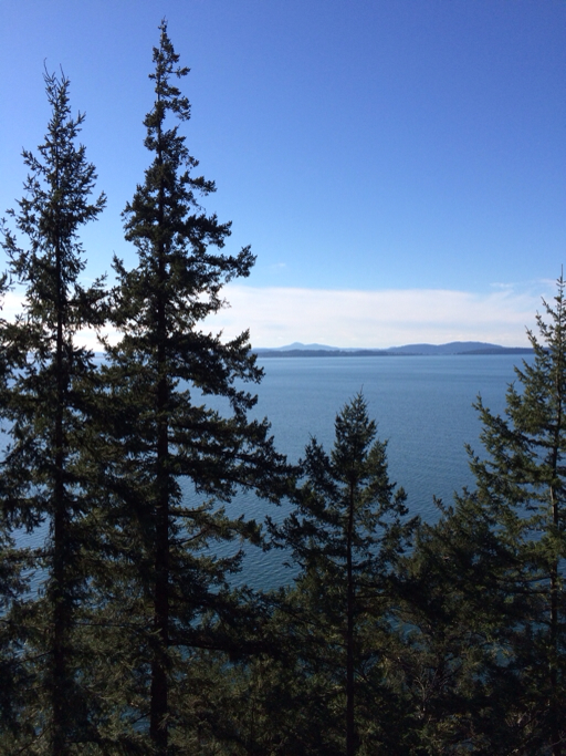 Bellingham is a college town about 1.5 hours north of Seattle, just 17 miles south of the Canadian border. Interstate 5 makes it an easy drive, but we had heard from Susan that Chuckanut Drive – the Pacific Coast road in this area – was very scenic, so we exited I-5 at Burlington and made our way to Chuckanut Drive and Puget Sound. Here’s the view from one of the scenic overlooks along Chuckanut Drive: