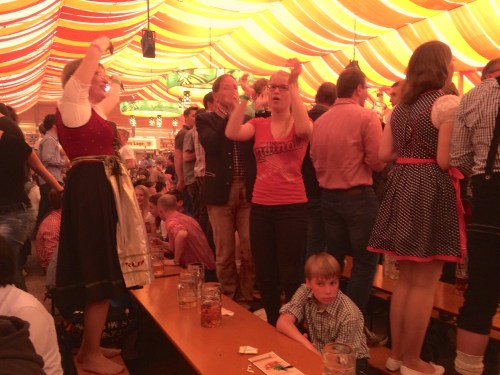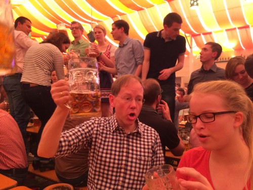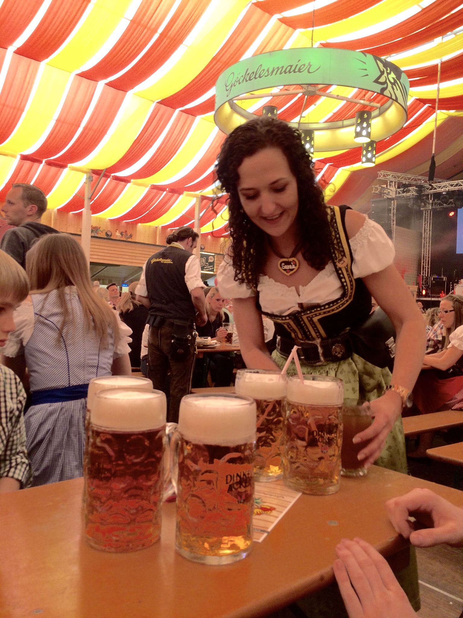After the ferris wheel, we made our way over to the big tent where Jörg had made reservations so we could all sit together. The beer was immediately on its way to the table.
