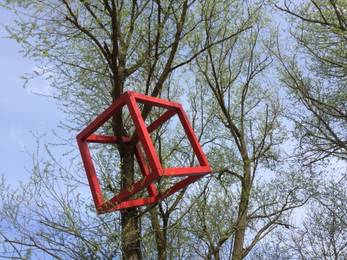The trail has been adorned with outdoor art. This piece is probably called, “Box Wood.”