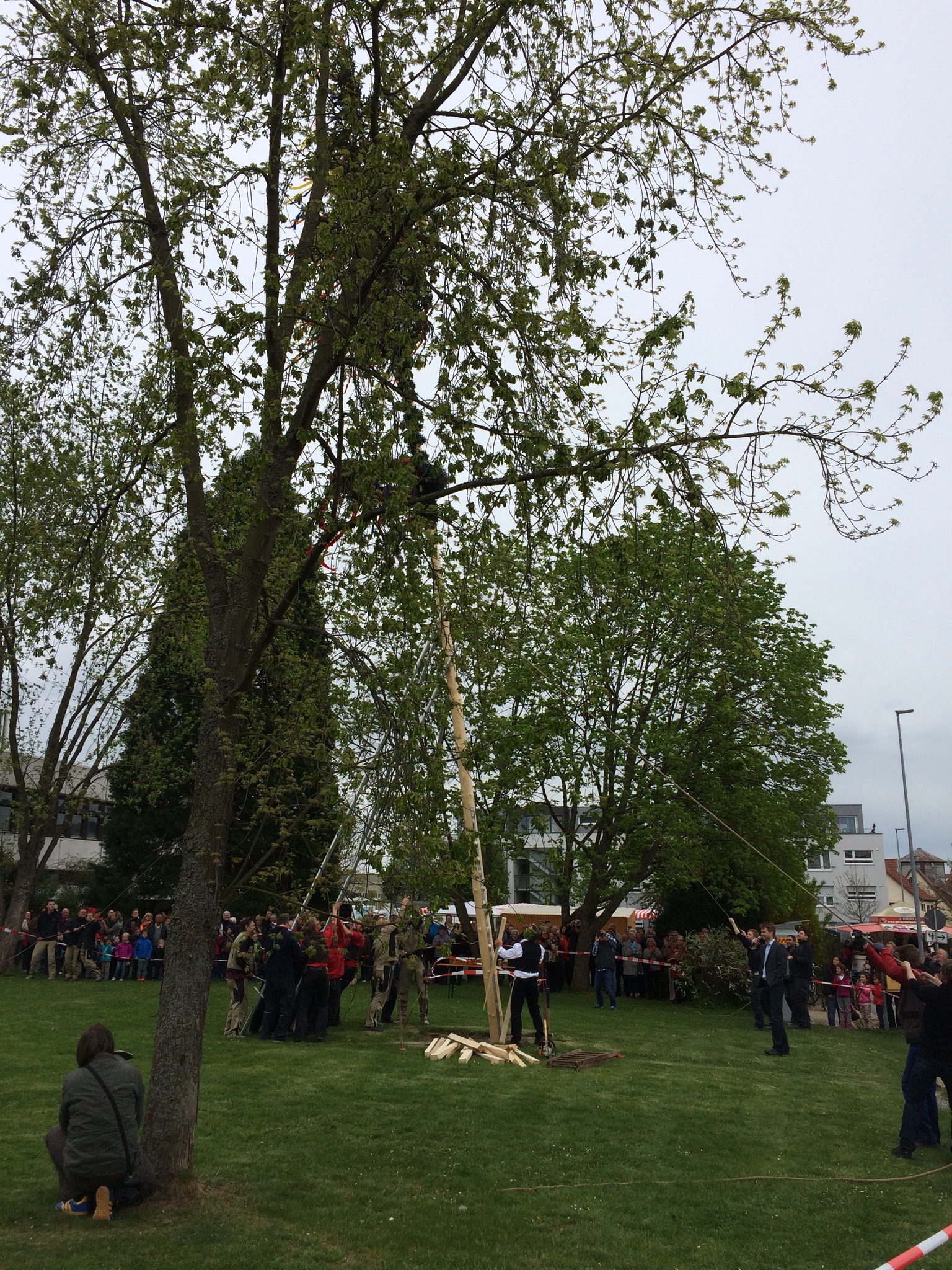 While we were all eating and listening to the music, the Maibaum was completed with the hanging of the guild symbols