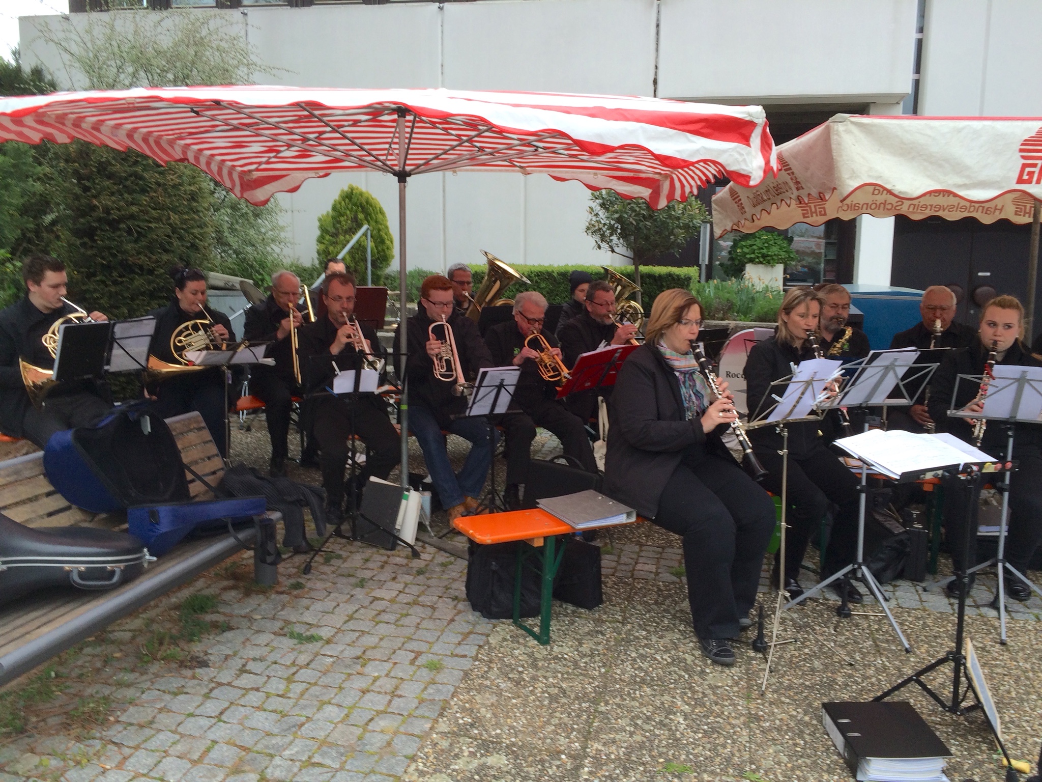 … while the band serenaded us. That's Christopher under the center of the umbrella playing the trumpet.
