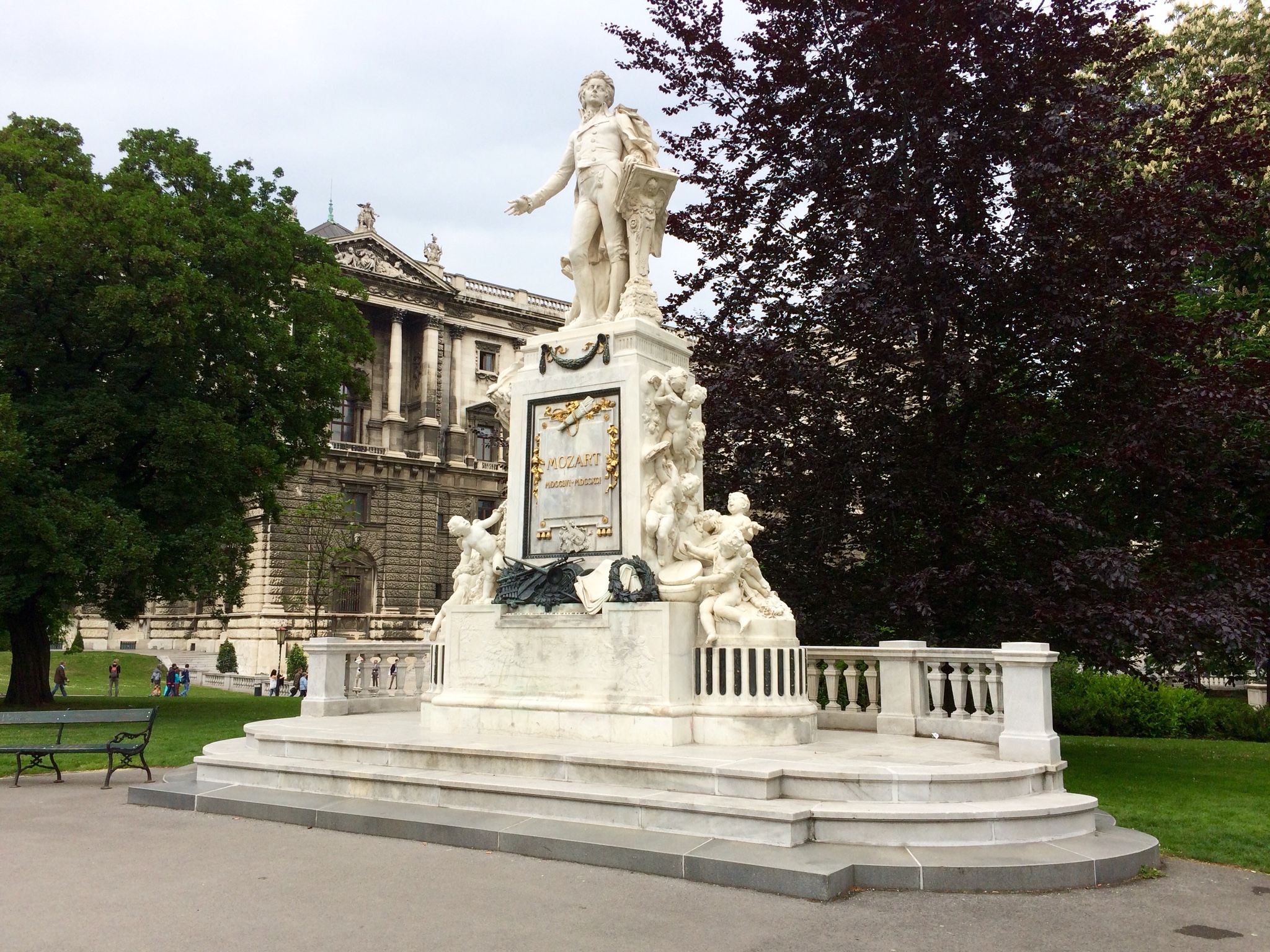 But Vienna, the seat of the Habsburg empire during the time of the great classical composers, has an even greater claim to being the music capital of Europe. So many of the great composers – Haydn (1732-1809), Mozart (1756-1791), Beethoven (1770-1827), Schubert (1797-1828) and Strauss (1825-1899) – lived and worked here. And memorials to these greats abound throughout the city. Here's one for Wolfgang Amadeus Mozart (1756-1791) near the Hofburg Palace (in the background):