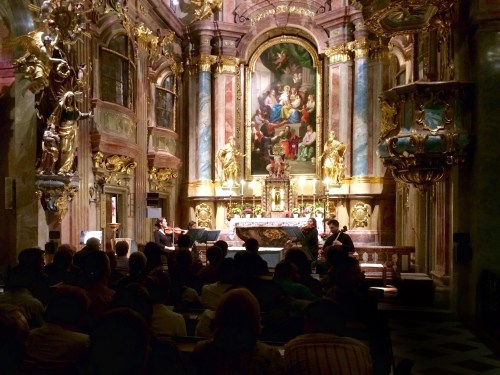 On Thursday, as we were wandering around the old city, we passed a church, St. Anna Kirche, where there was a notice that a string quartet would be playing that evening: Mozart (String Quartet No. 14 in G Major, K.387); and, Beethoven (String Quartet No. 4, Opus 18). The music was familiar to us and would be to you and the setting and acoustics in this little church were as magnificent as what we heard in Salzburg more than 30 years ago.