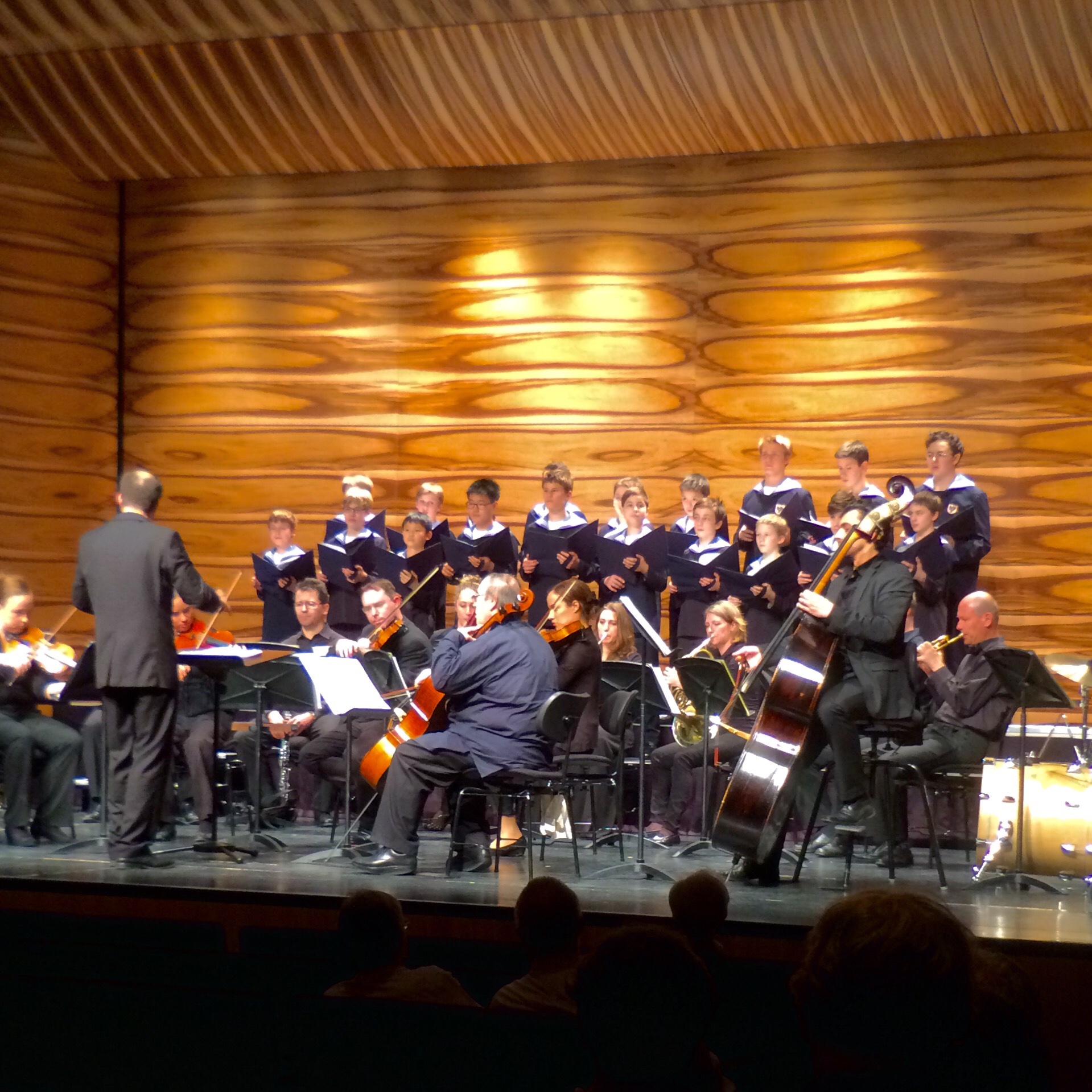 The choir typically consists of around 100 boys, mostly between the ages of 10 and 14, all trebles and altos, and they are broken down into 4 touring groups. Here's the group we saw, performing with a small orchestra: