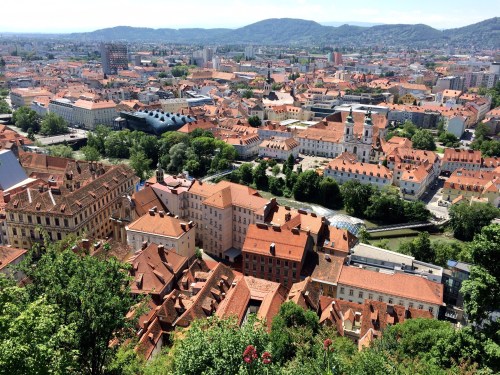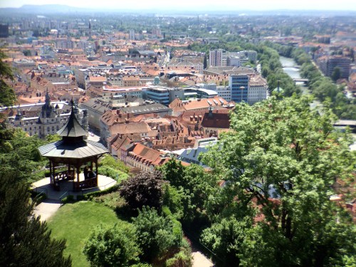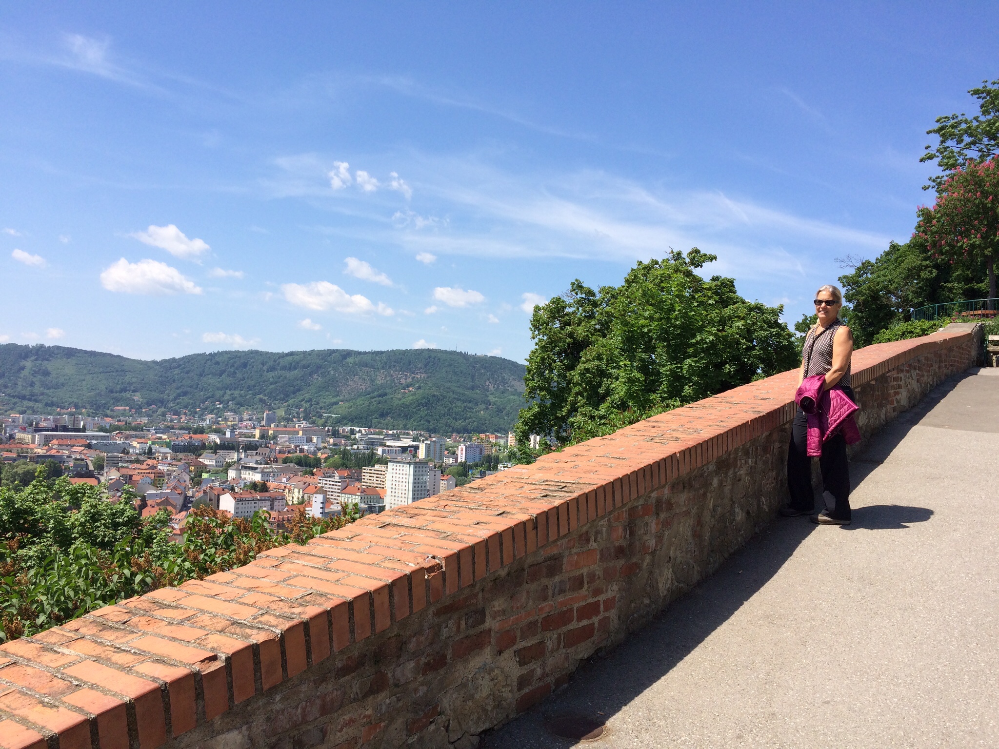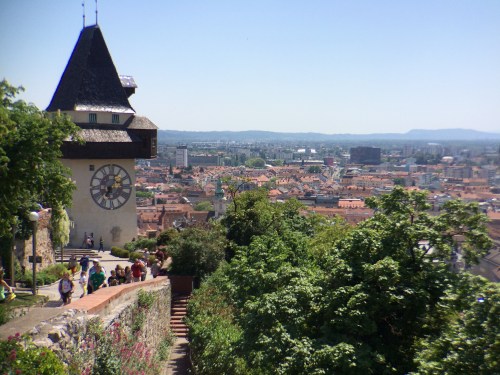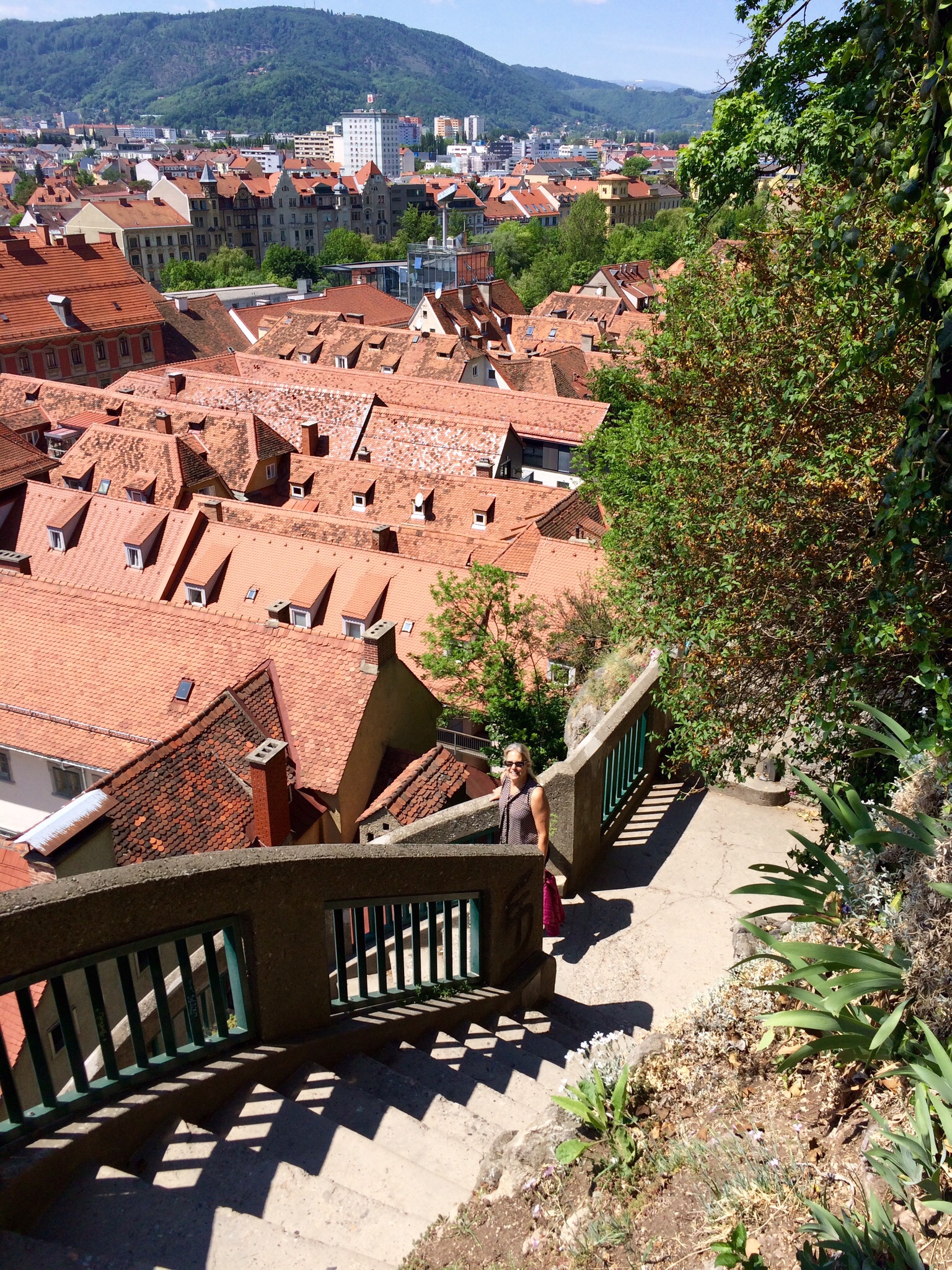 That’s the Uhrturm, the clock tower, below. The elevator let us out at its base. We walked up from there…