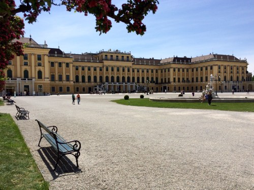 We spent half a day visiting the Schönbrunn Palace and its grounds, a UNESCO World Cultural Heritage Site, on Tuesday. Here’s the front façade:
