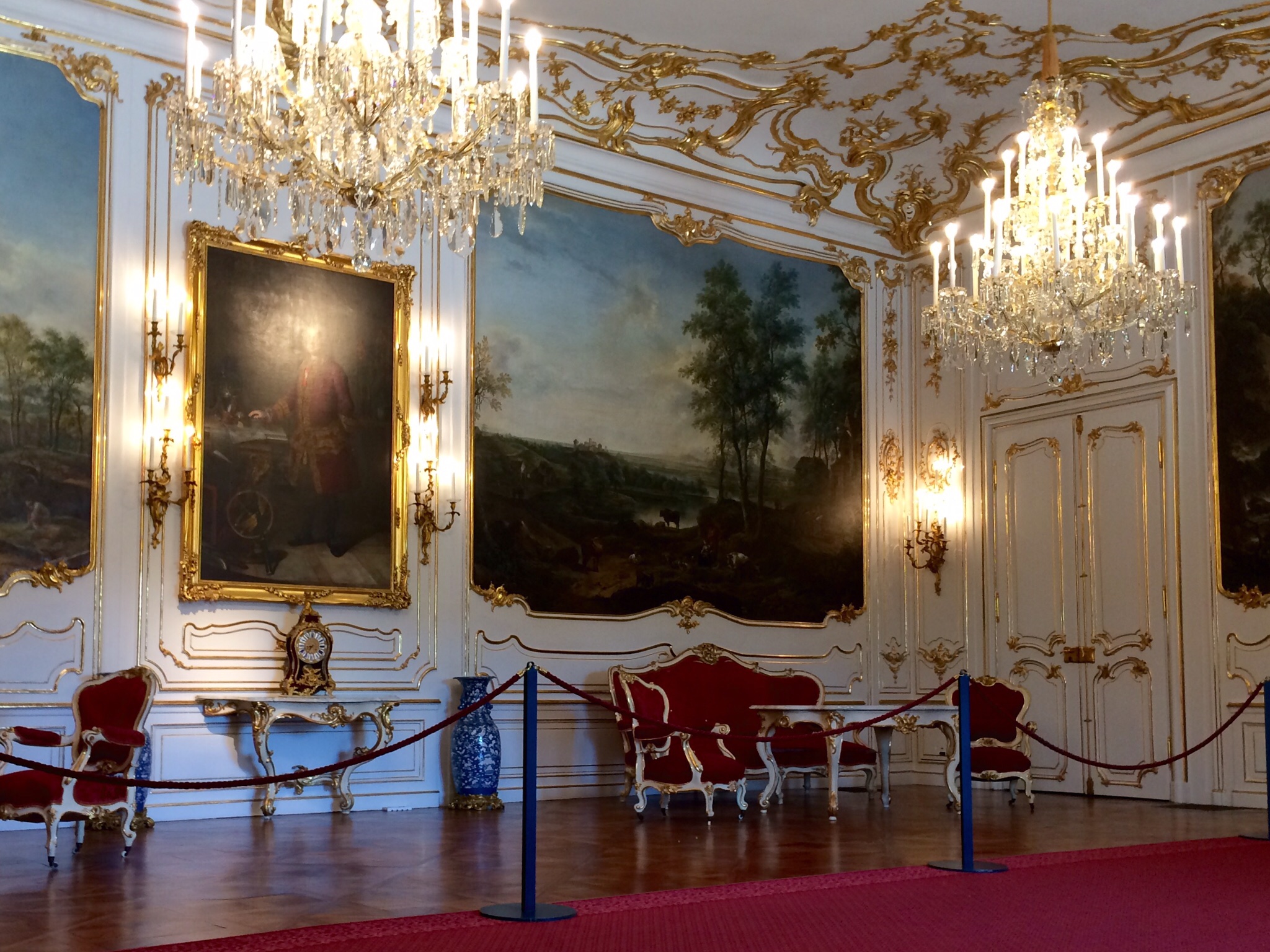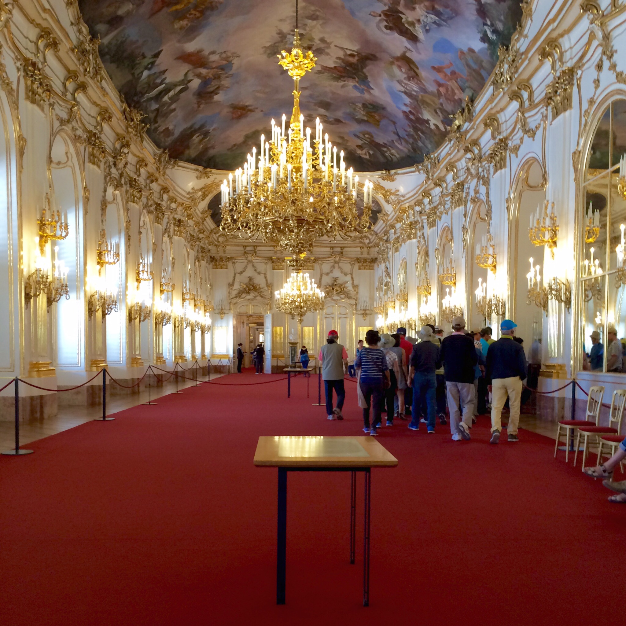 I’m not sure, because it was so dizzying walking through all the gilt and lavishness, but I think this is the Great Gallery where the delegates of the Congress of Vienna met in 1815 to divide up Europe after the defeat of Napoleon (today it was under invasion by masses of Chinese tourists):