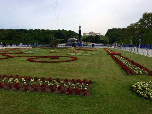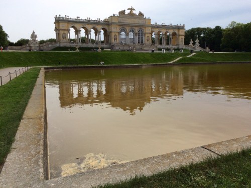 The Palace grounds are enormous. Making our way out back, we could see the Gloriette, an unusual, open-air structure, off in the distance.