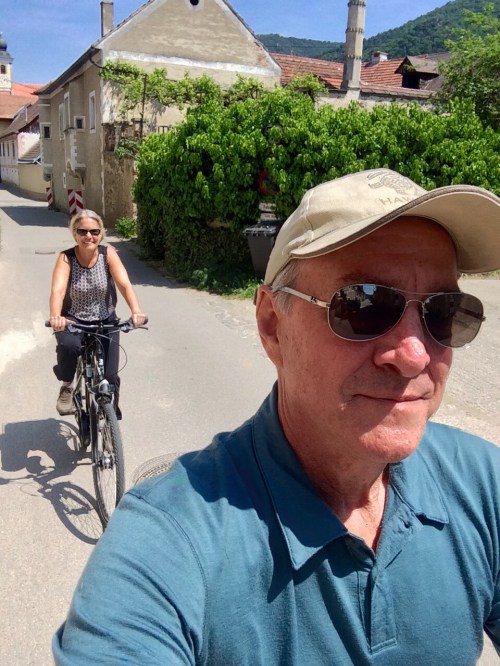 Hiking and biking along this stretch of the Danube is a popular thing to do, especially in the summertime. We were happy to be here in the late spring so we could avoid the crowds. The bike paths are well maintained, scenic and safe, passing through a number of medieval villages, scuh as Dürnstein (where we hiked up to castle ruins – more on that later), Weißenkirchen in der Wachau (lunch), Spitz (another castle), Willendorf in der Wachau and Aggsbach Markt.