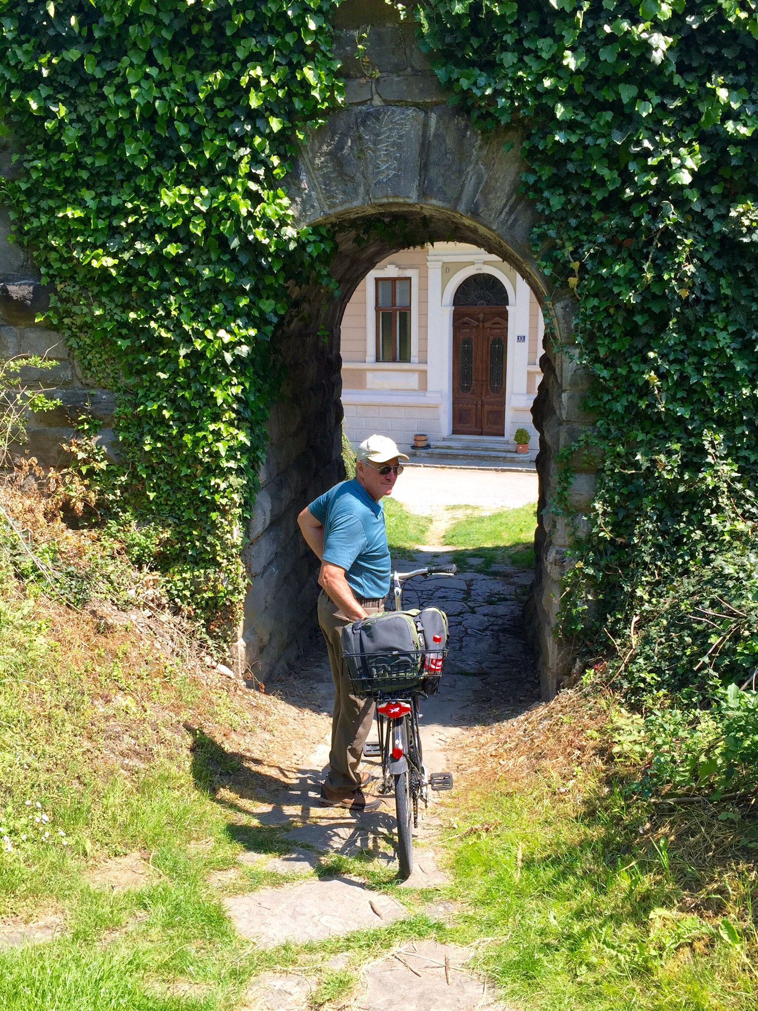 … passing under a stone archway supporting the railroad, above, but we decided not to make the hike up to the castle ruins.