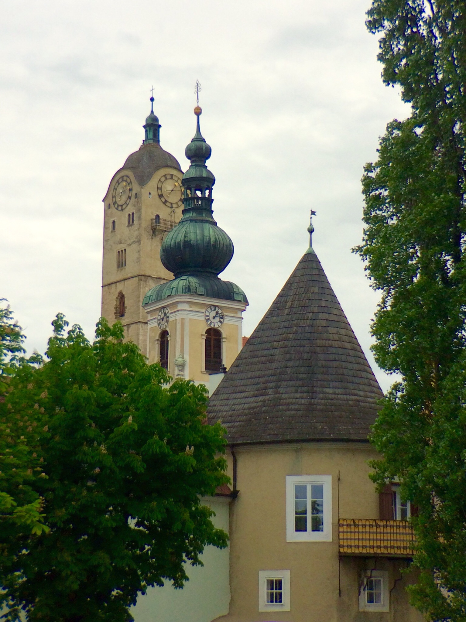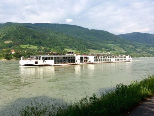 These boats have to be built low in the water in order to get under the bridges. We looked down on one from the bridge across the Danube at Melk and had to chuckle when we saw that it had a putt-putt golf course on the sundeck.