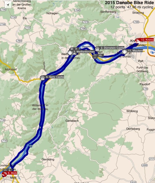 We returned to Krems from Melk on the other side of the Danube River, the southeast side, which is not as scenic, but the cycling was better because the trail is mostly off the road and right along the river's edge.