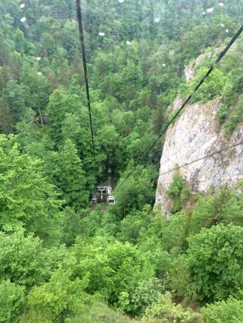 … took the cable car back up to the top of the overlook cliff, and then hiked the 2 miles back to the hotel to get our backpacks and catch a taxi to the train station in Blansko.