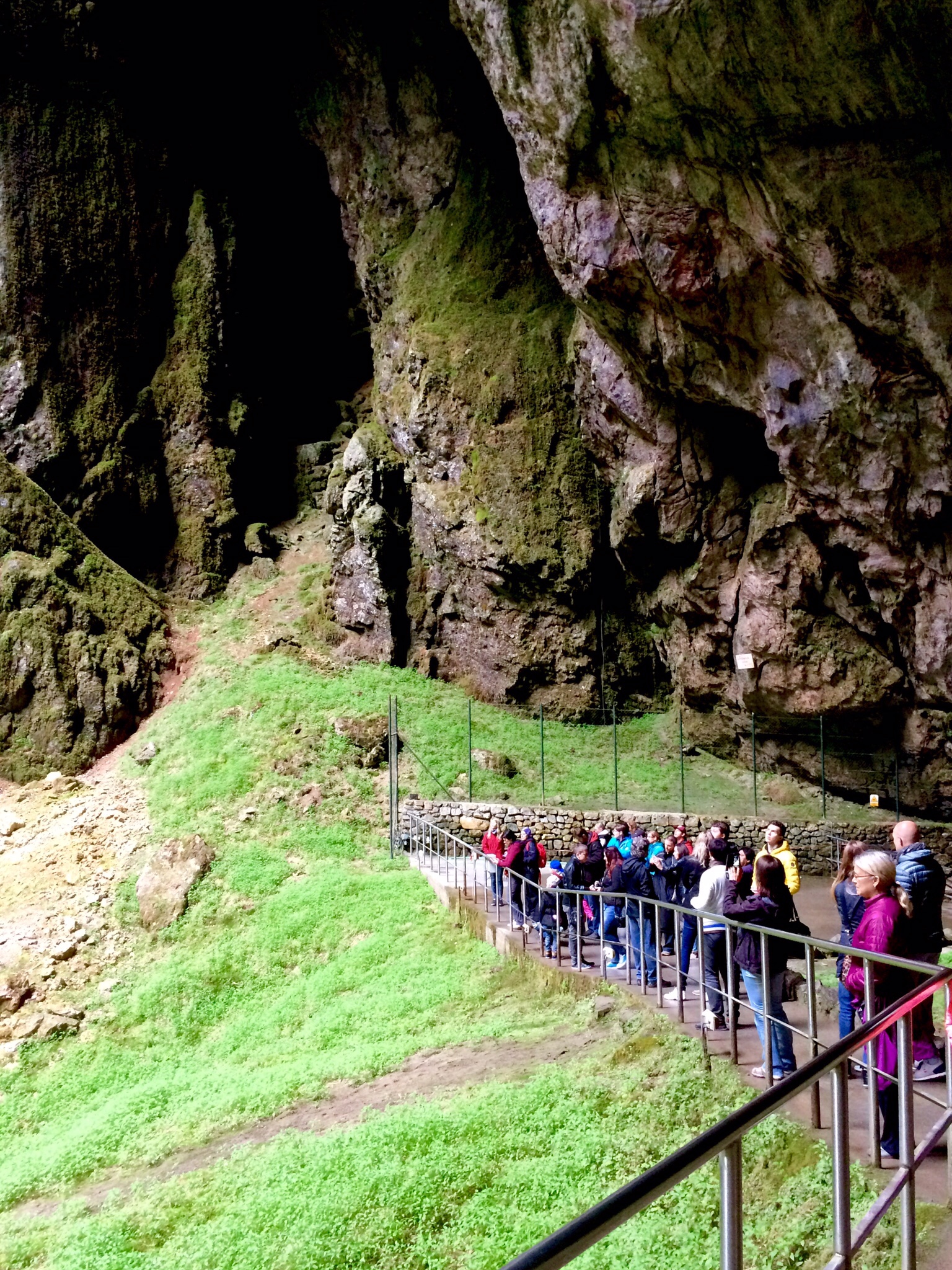 There's a cable car on the top of the hill that we took down the cliff face to the cave entrance. It was just too early in the day to rappel down.