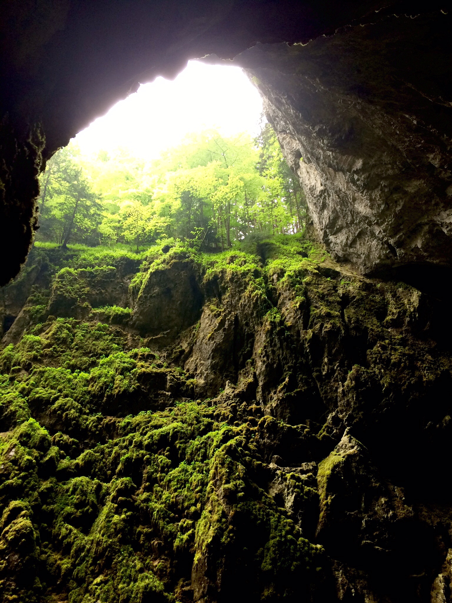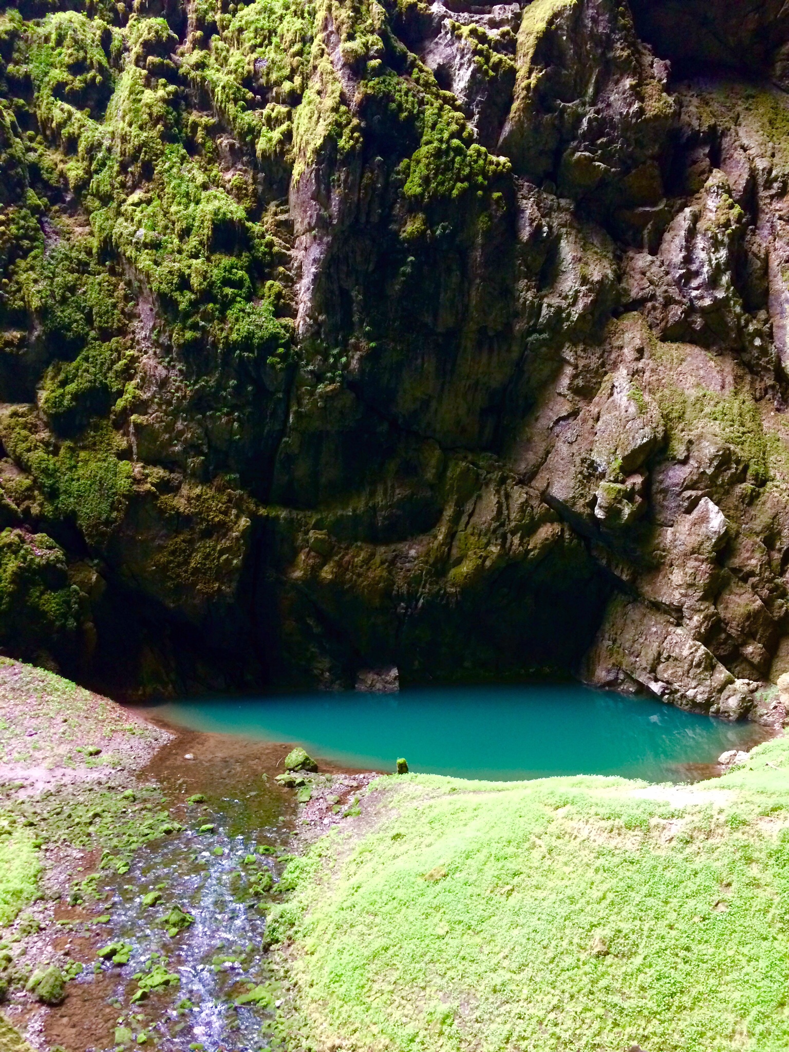 After walking a little less than a half mile underground, we entered a man-made tunnel that was about 4 feet wide and 8 feet high that we walked through for about another quarter mile which led us out into the open at the bottom of the Macocha Abyss: