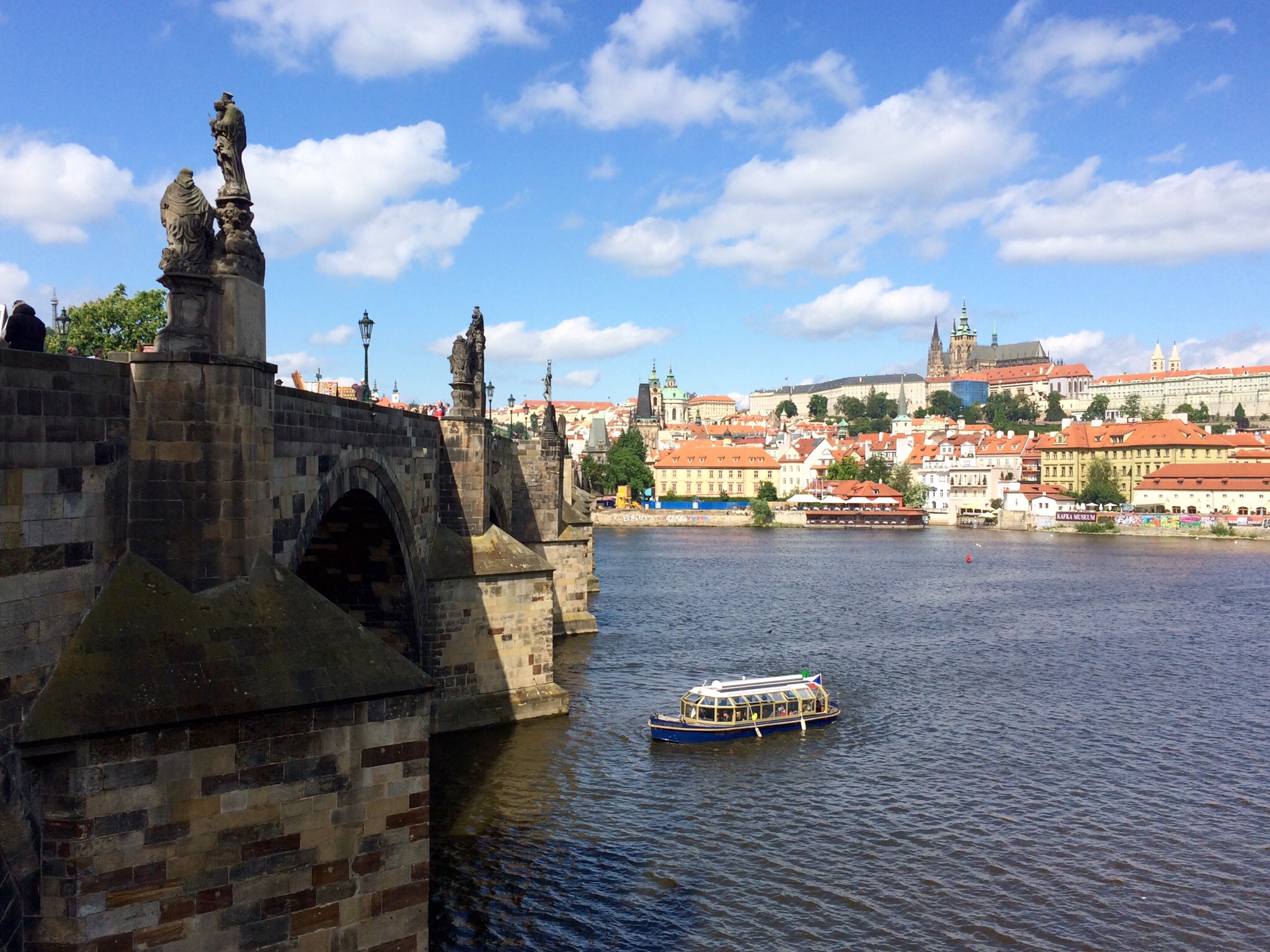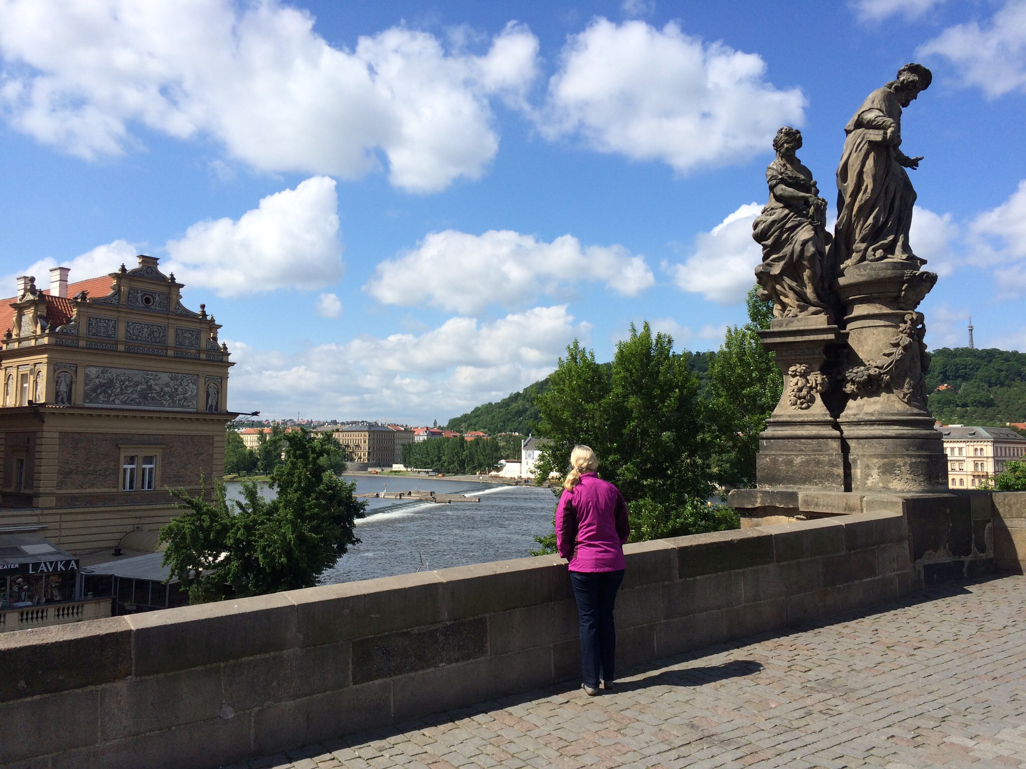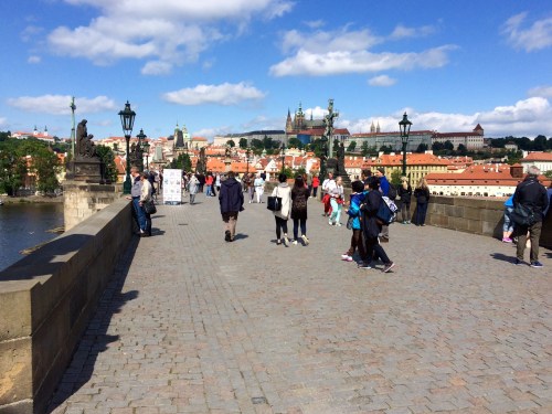 Since we were staying in the Old Town on the right bank – the east side – we had a nice view of Prague Castle (Pražský hrad) up on the hill across the river.
