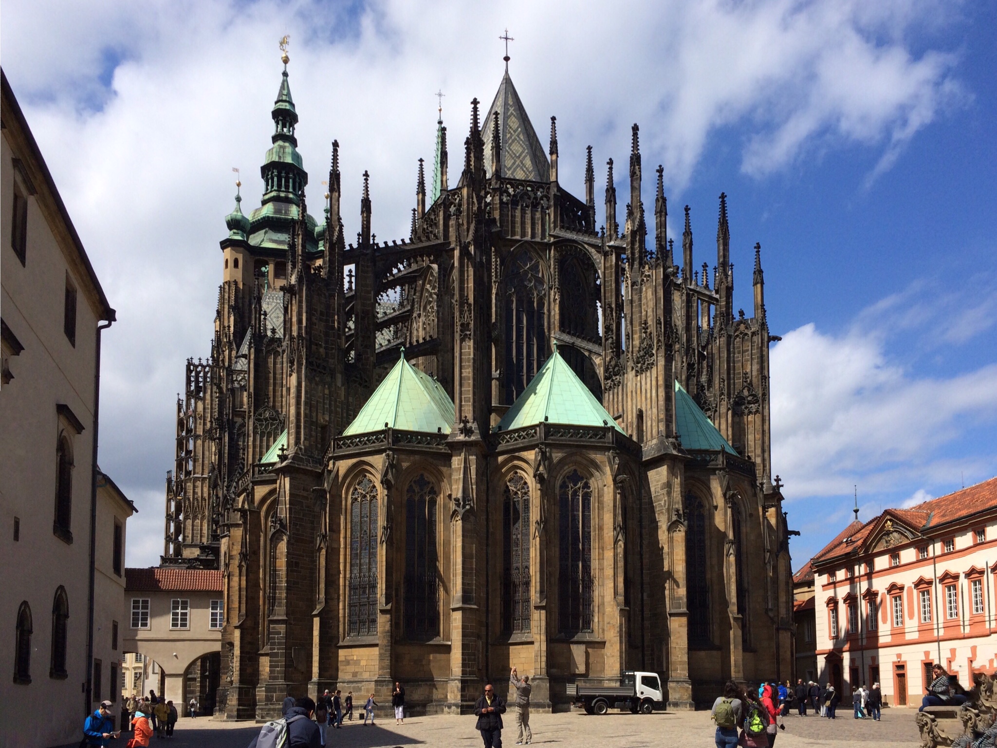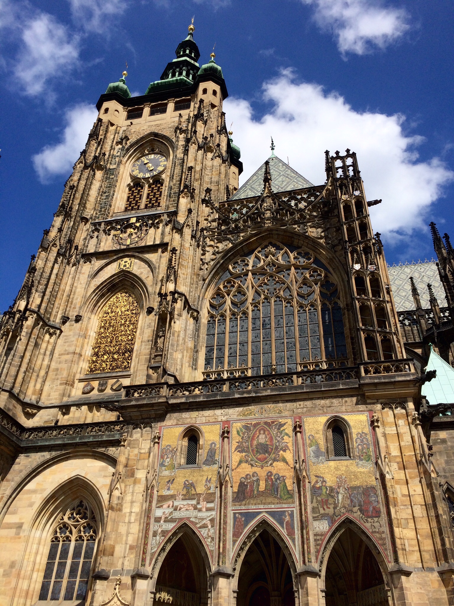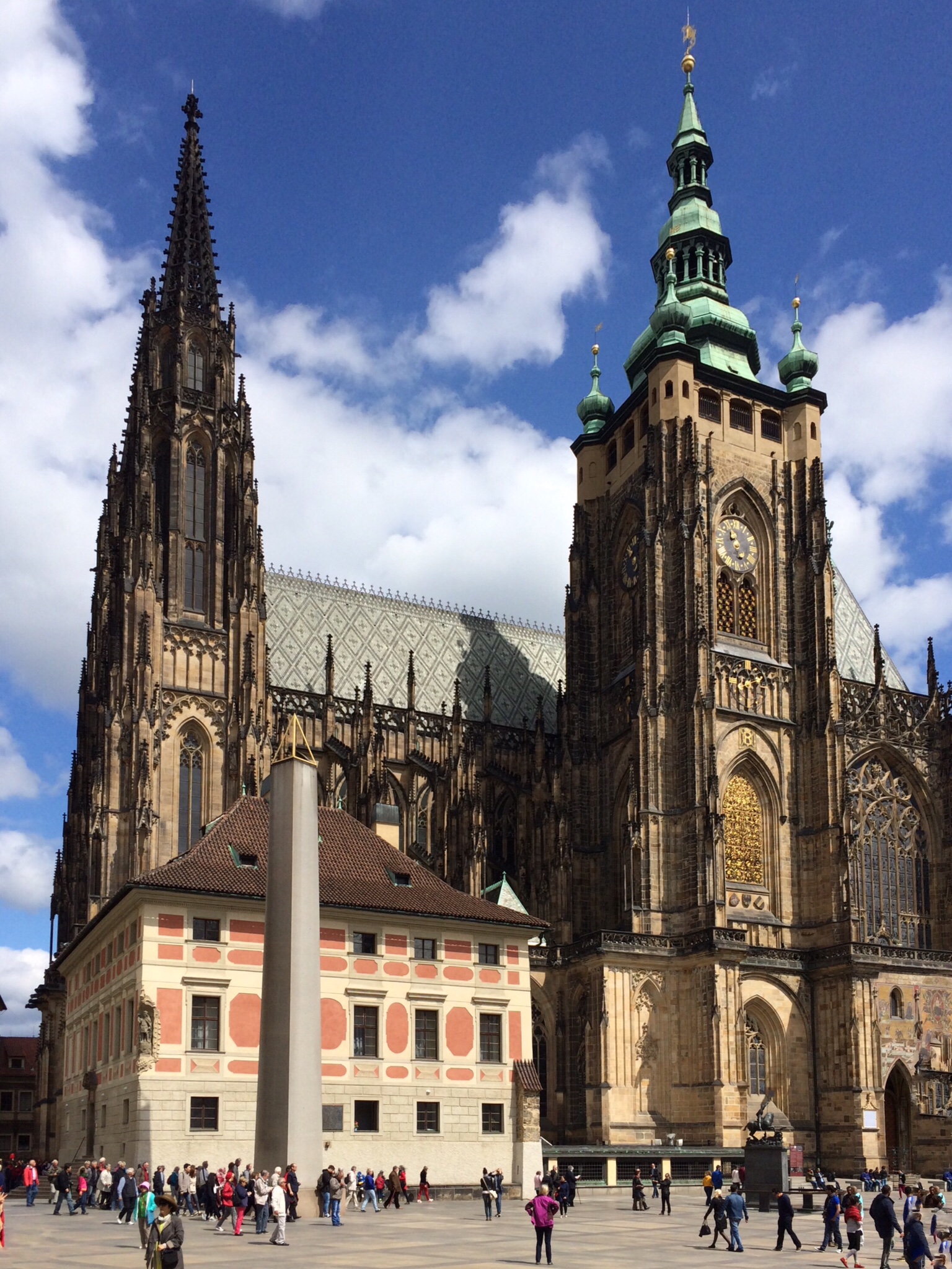 After passing through the palace gate and walking up the main street past several palace buildings and an old Gothic basilica, we came upon Saint Vitus Cathedral inside the main courtyard of the palace.