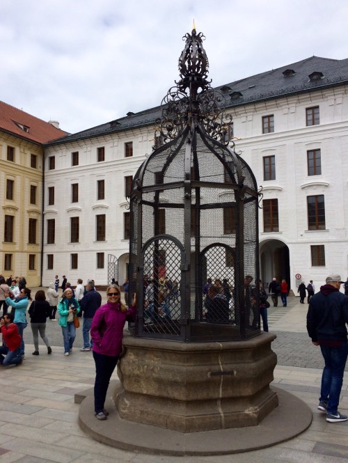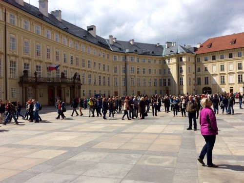 We walked around the cathedral to the left which was the side of its historical front entrance (which is what Dale is looking at in the photo, below). Prague Castle is still in use as the seat of the President of the Czech Republic; I’m pretty sure those are his offices on the left: