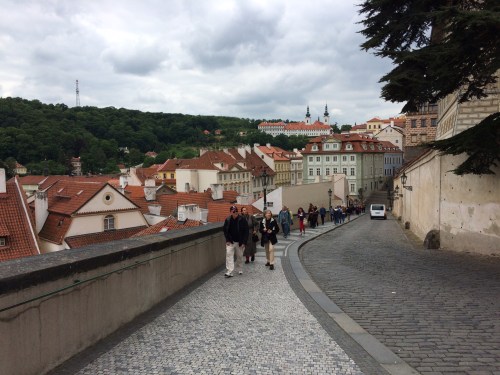 Having successfully made it across Charles Bridge, we passed through the western bridge tower into Malá Strana making ready for our hike up to the top of Hradčany to Prague Castle.
