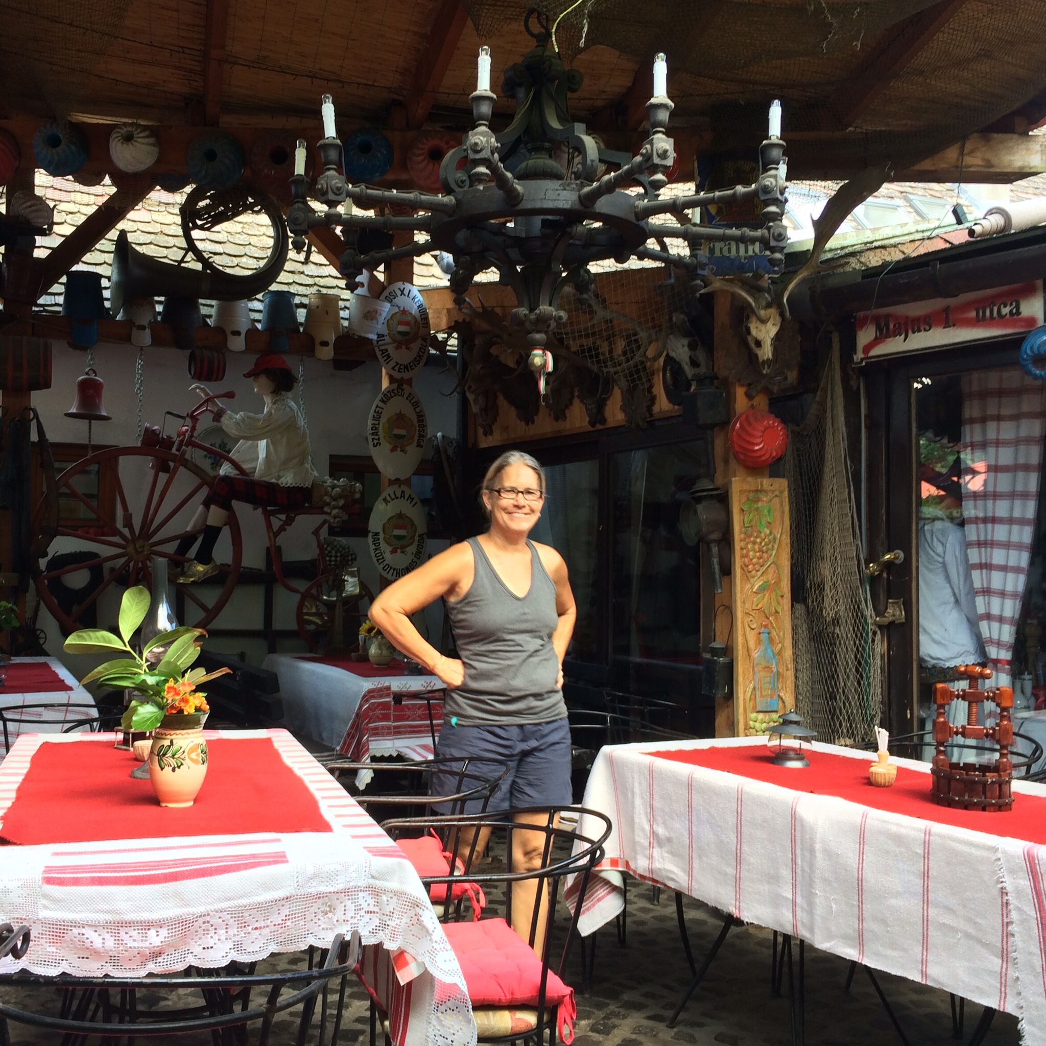 While it was cool on the water during the boat ride, Szentendre itself was stiflingly hot, so we looked for a shady restaurant to have lunch and found one up an alley that could have easily been mistaken for a museum.
