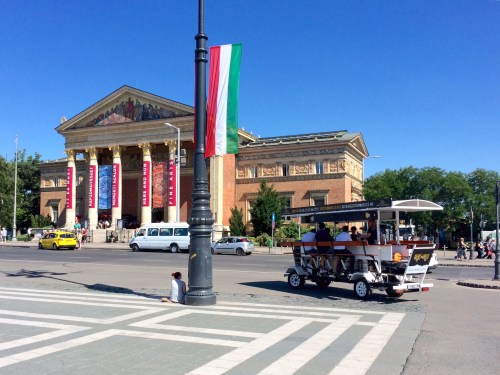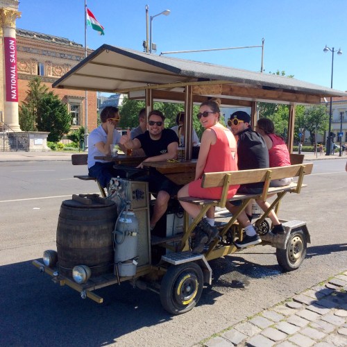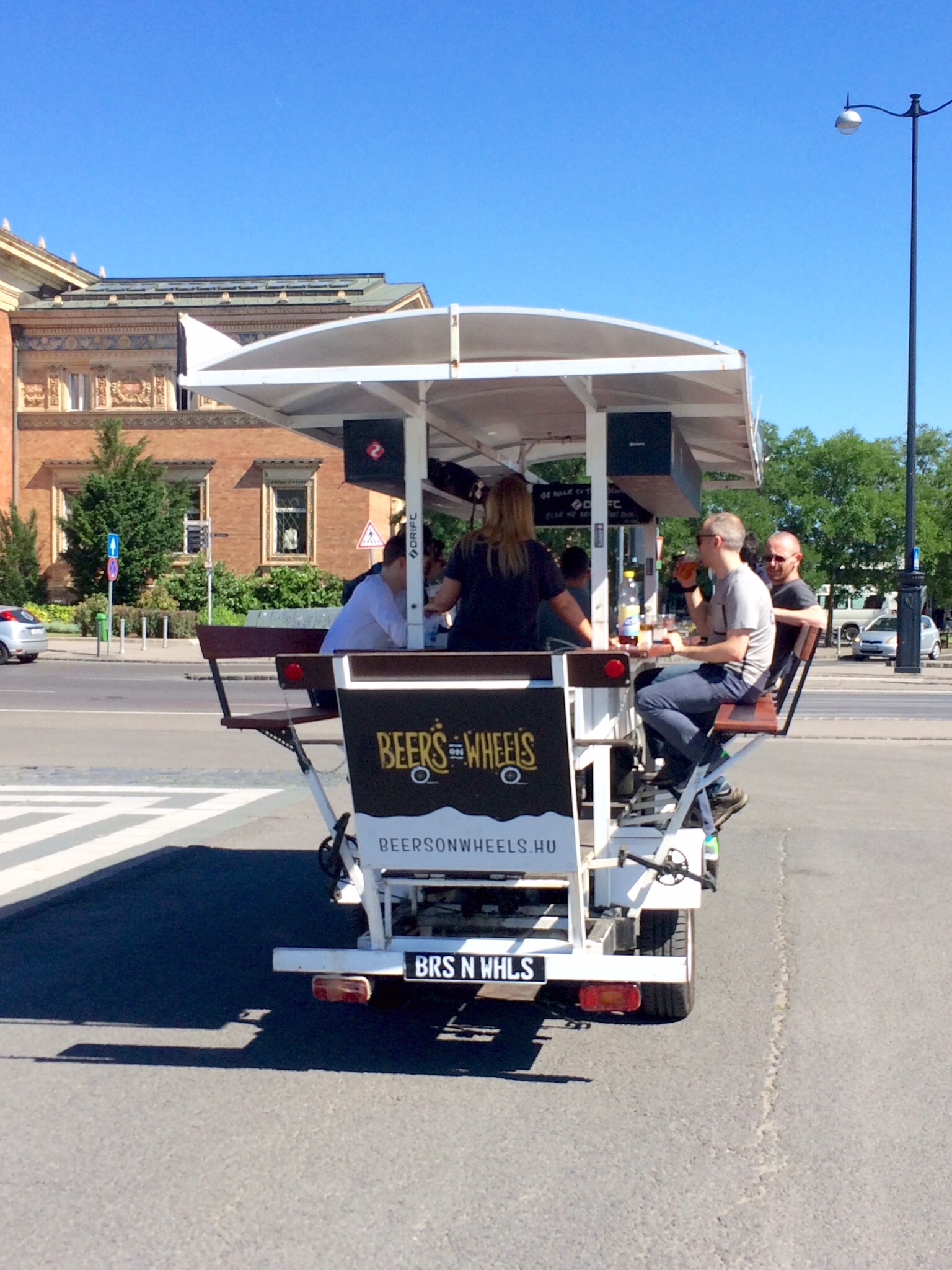 When we popped up from the Underground at street level in Heroes' Square, we were greeted by this beer-mobile, propelled around the square by peddling patrons.