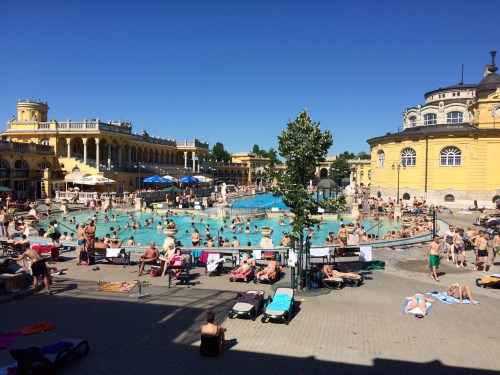 In spite of the heat, however, we had no desire to go to the baths which, to our eyes, just looked like over-crowded public swimming pools. Here's the one at Széchenyi: