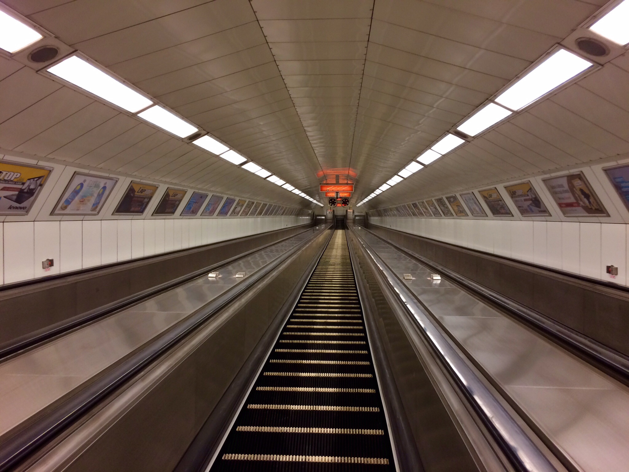 Once underground, we took the M-2 just one stop to a major underground transfer station where, after taking the escalators back up 100 feet, we transfered to the M-1, known to the locals simply as the “Underground.”