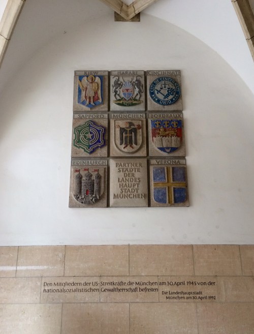 When we got back to the apartment, I translated the inscription that I noticed I had inadvertently caught in the sister-city photo and was a little taken aback when it turned out to read that it memorialized: “The Liberation of Munich by Amerian Forces on April 30, 1945, from the National Socialists” – a rather peculiar way to characterize things in light of Munich's history: