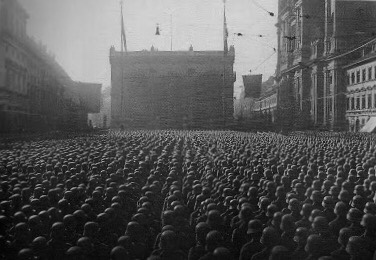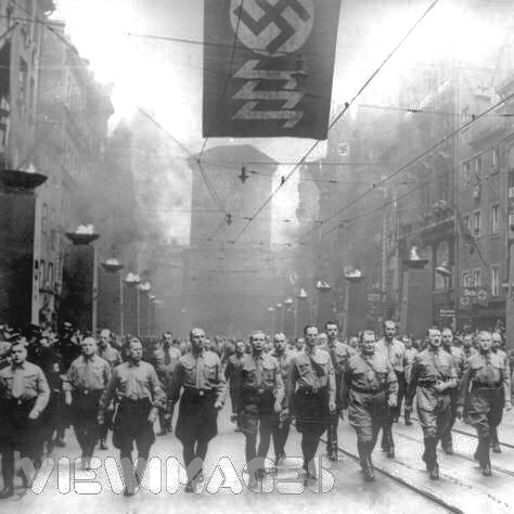 In the turmoil that followed WWI in Germany, it was not too difficult for Hitler and the Nazi Party to attract many disaffected war veterans to their cause, which they formed into a paramilitary organization known as the Sturmabteilung, that is, the Storm Troopers, also known as the Brown Shirts because of the uniforms they adopted. The ranks of the Storm Troopers ultimately rose to 2,000,000 men in 1933, ten times the size of the German Army which had been limited to 100,000 men by the Treaty of Versailles.