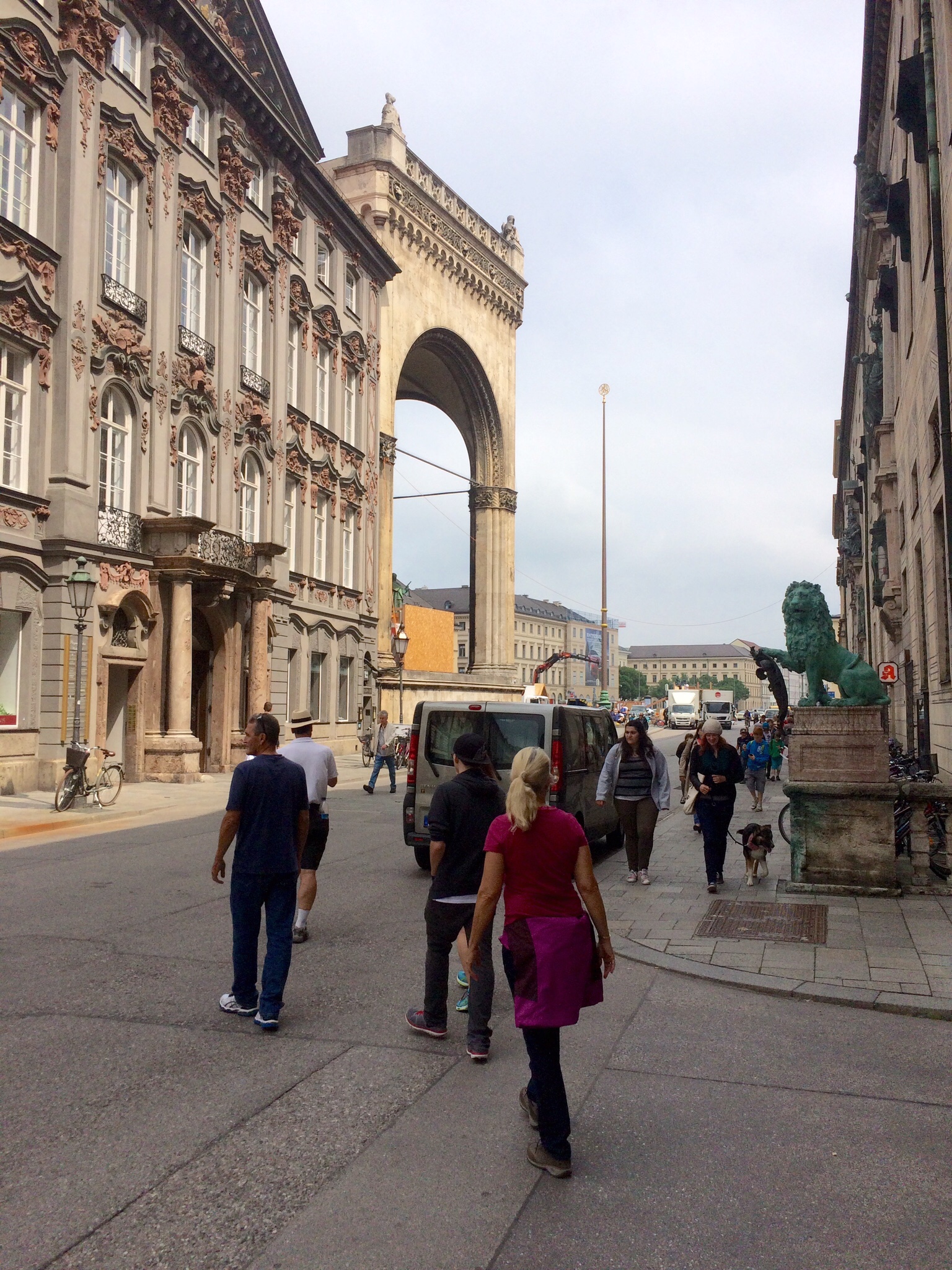 When Hitler heard what had happened, he ordered his membership to march the next day anyway. So, on November 9, around 2,000 Nazis proceeded through town, headed toward the Odeonplatz near the Royal Palace. The route took them up this street near Marienplatz: