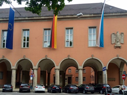 We concluded our tour near this building, the Bavarian State Tax Office, which on this day was flying the flags of the European Union, the German Republic and the State of Bavaria…