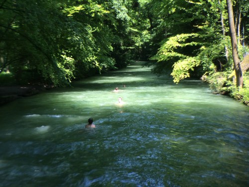 The sun came out in force on Friday, so we made our way to the English Garden (Englischer Garten) on the banks of the Isar River.
