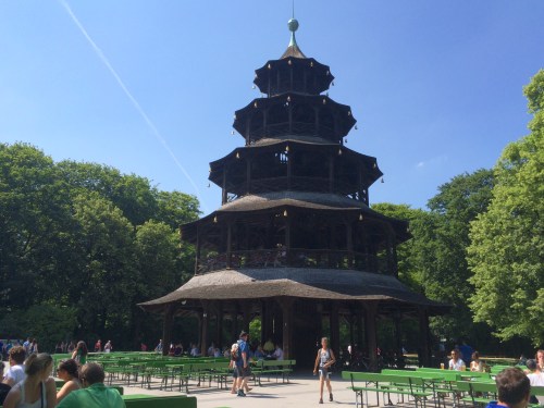 We finally made our way to the Chinesischer Turm which marks the location of the Biergarten. If you look closely, you might be able to see an Oom-pah band playing on the second floor.