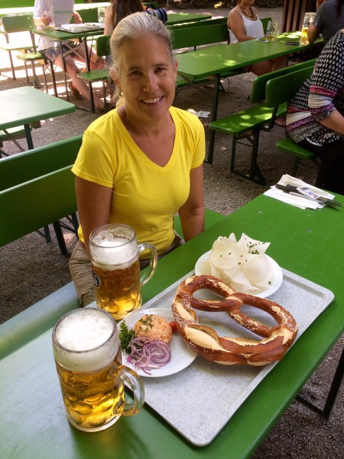 We visited Munich in 1983 and stayed for a week with a German friend, Robert Henkhaus, who I met when I was in Travemünde in 1980. We've since lost touch, unfortunately, but Dale and I celebrated our friendship with Robert by downing a Maß (1 liter mug) of beer and munching on a giant pretzel and radishes, just like he taught us to do when we visited him here years ago.