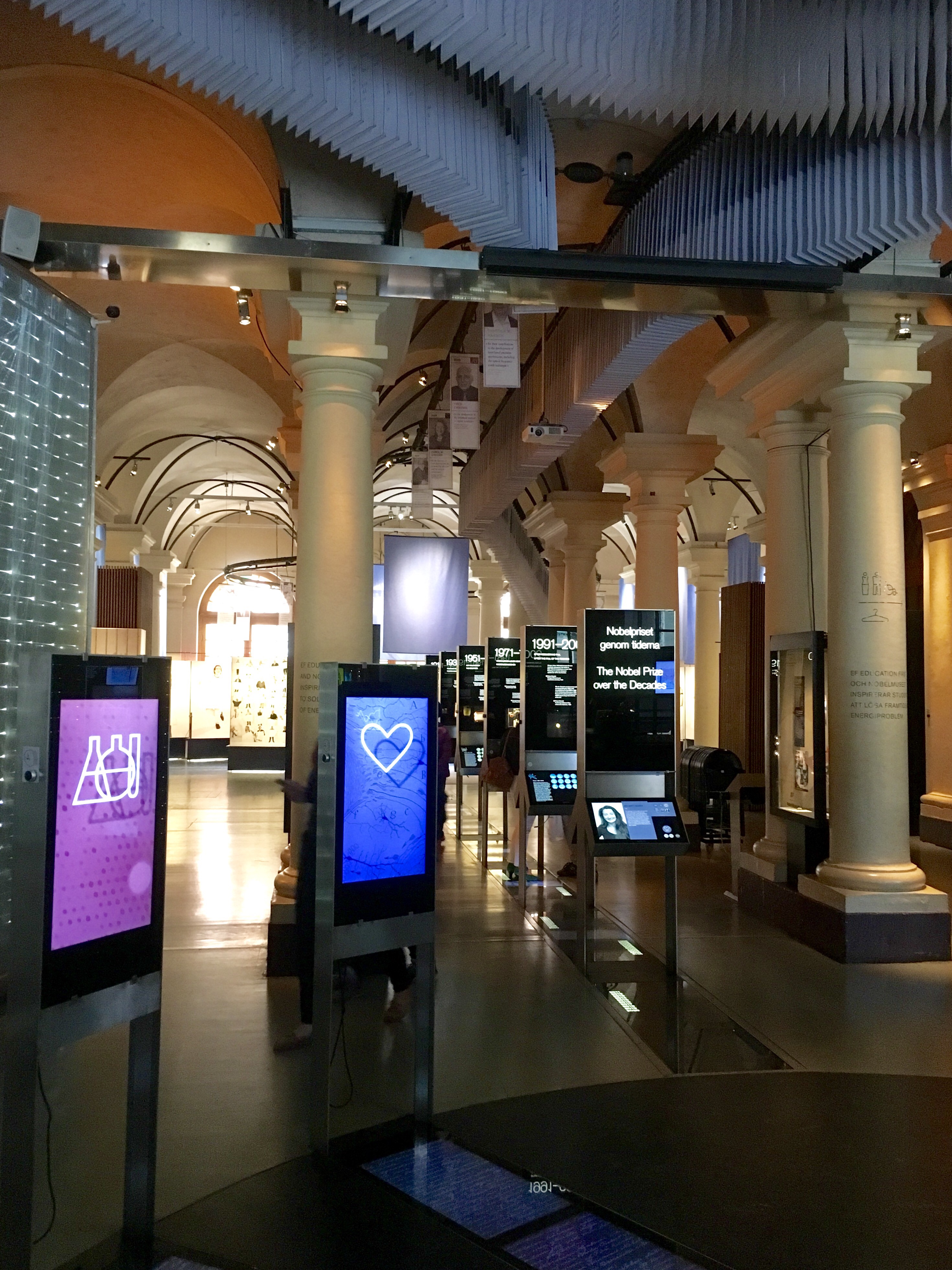 Here’s the inside of the Swedish Nobel Museum; that conveyor system on the ceiling has a card for each Nobel Prize winner and his or her contribution – there are nearly 900 of them: